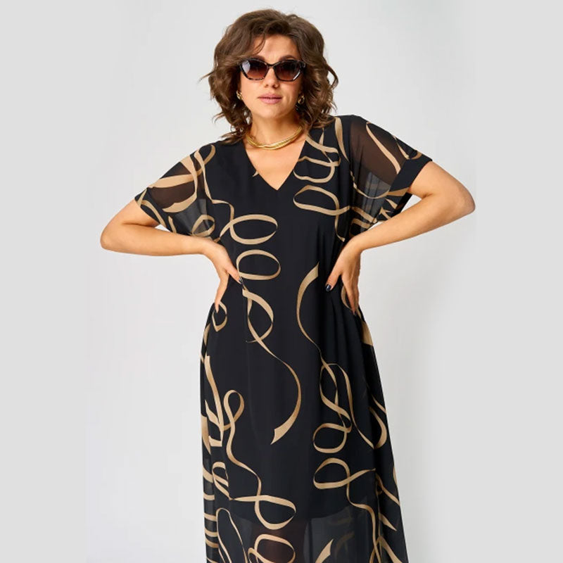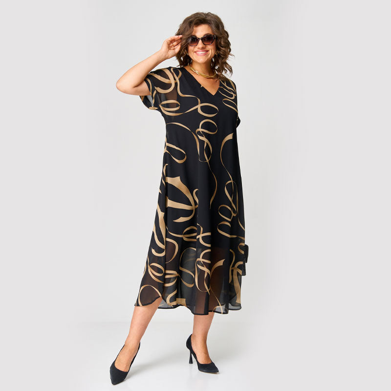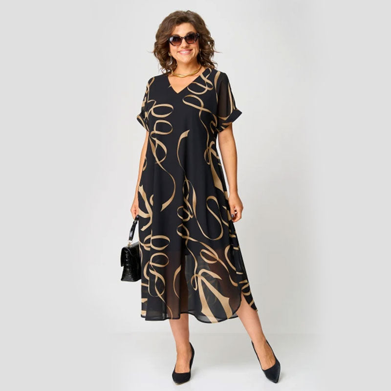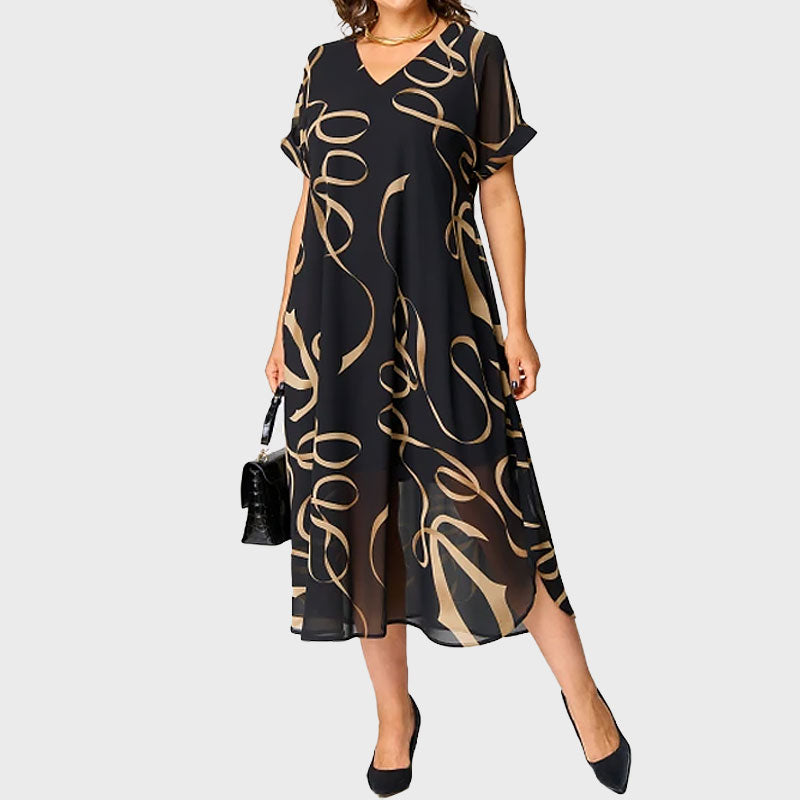 - 1 x Printtikuvioinen V-Aukkoinen Rento Mekko